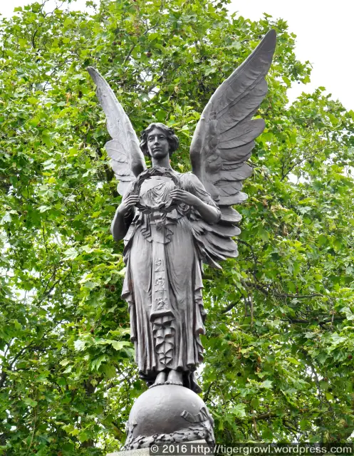 The old town hall and fire station are near Tottenham Green and at the southern tip of this stands the war memorial. Funded by the then Tottenham District Council at a cost of £2,000, it was erected in 1923. The monument is of course for the First World War but the inscription was later amended to include the Second World War. The Grade II listing entry records that it was ‘unveiled by HRH Princess Louise, Duchess of Argyle (assisted by an orphan boy)’ and that the occasion was attended by 40,000 people.The memorial is topped, as was common, by a winged angel holding a wreath as a symbol of peace. (Unfortunately, that peace was not to endure.) It is by Louis Frederick Roslyn (1878-1934) who is noted for his war memorials.