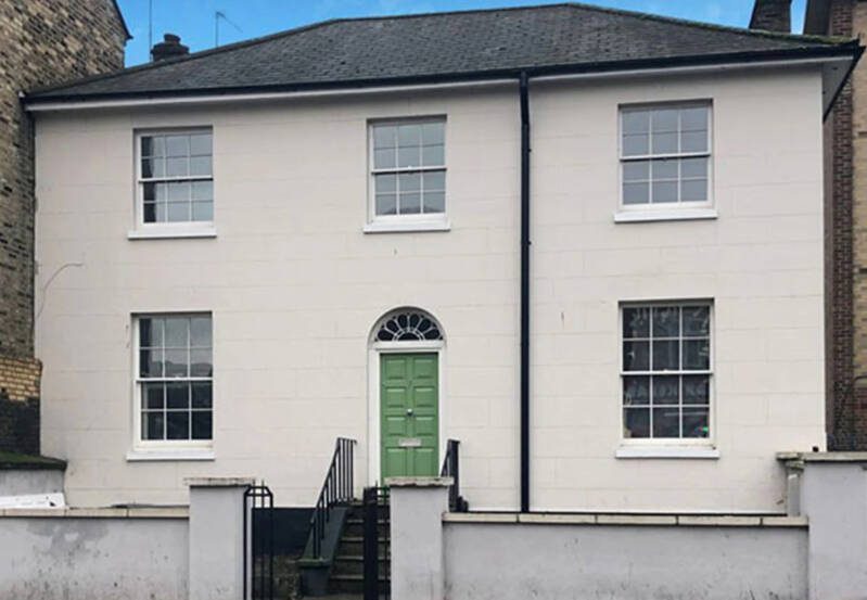 This house forms part of a terrace and is now flats and offices. The front of the building still has the impressive rainwater head, dated 1817. At the end of this terrace is an imposing house owned by Windsor and Co Solicitors, they have been in residence for more than 100 years. Inside, this building still contains many of its original features.