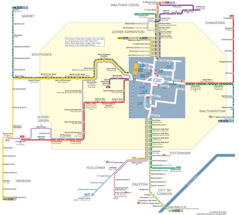 As you can see in the maps and the spider maps various bus routes link EDMONTON with ENFIELD TOWN
